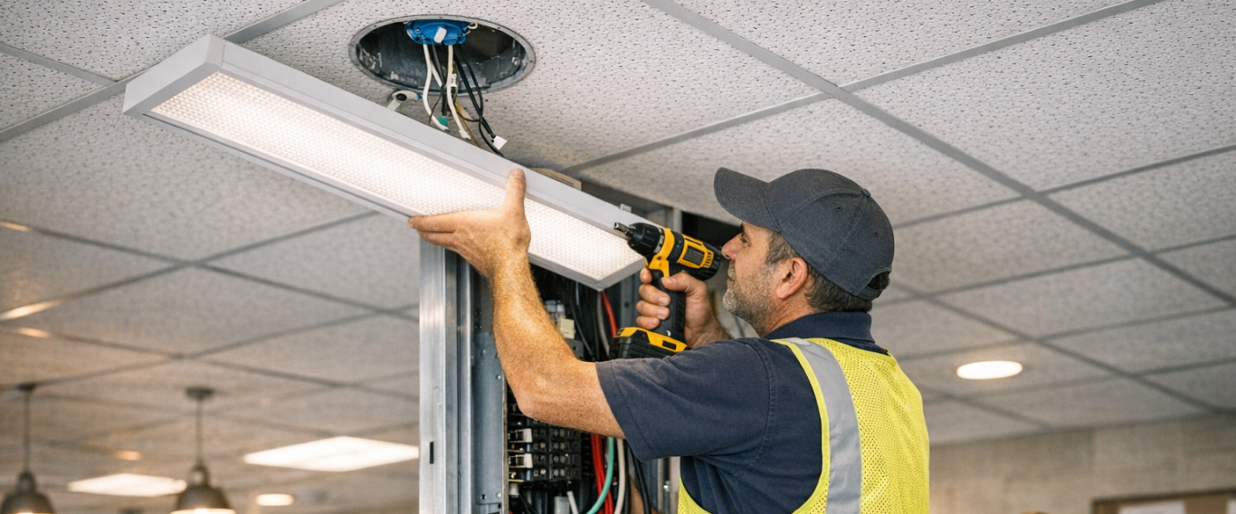 Illuminate your business with expert fixture installations. From offices to retail spaces, we deliver safe, efficient lighting solutions tailored to your layout and electrical needs. Brighten up with confidence.